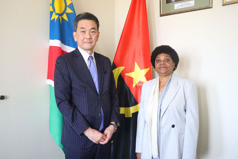 A S.E. Embaixadora Extraordinária e Plenipotenciária da República de Angola na República da Namíbia e Decana do Corpo Diplomático na Namíbia, Jovelina Imperial e Costa recebeu nesta segunda-feira, 27 de Janeiro de 2025, num encontro de cortesia, o novo Embaixador nomeado do Japão na República da Namíbia, S.E Embaixadora Shinichi Asazuma.